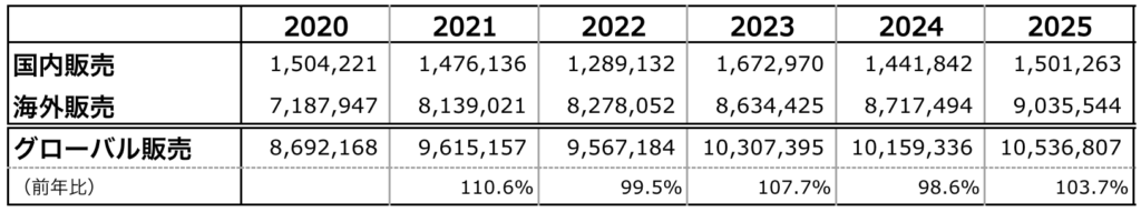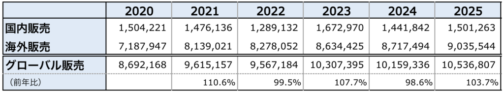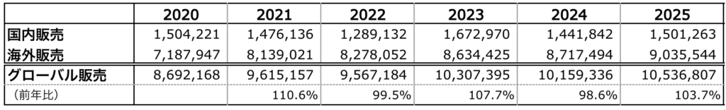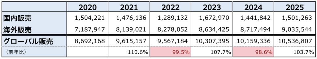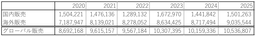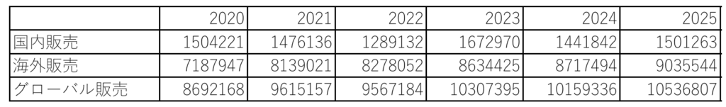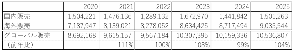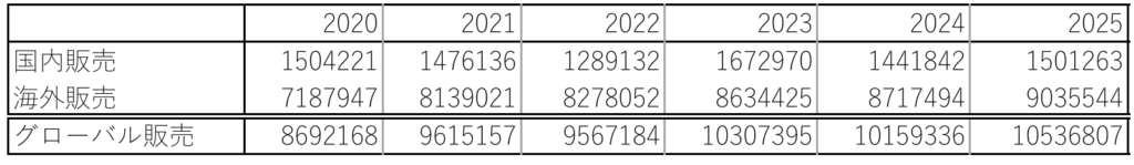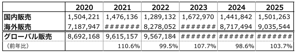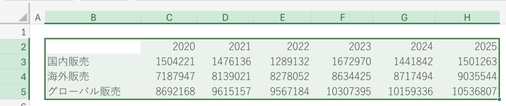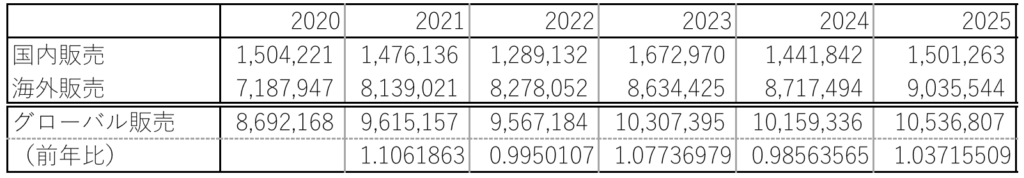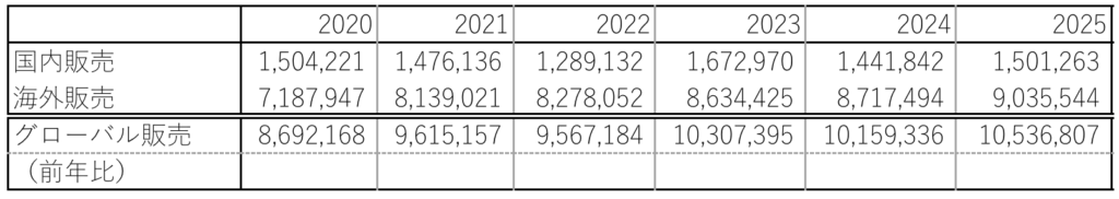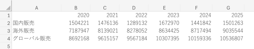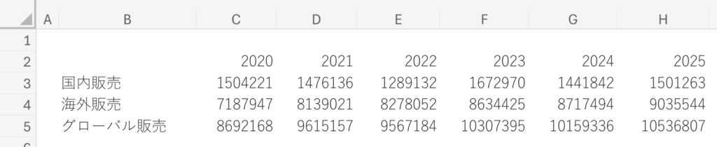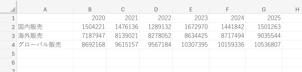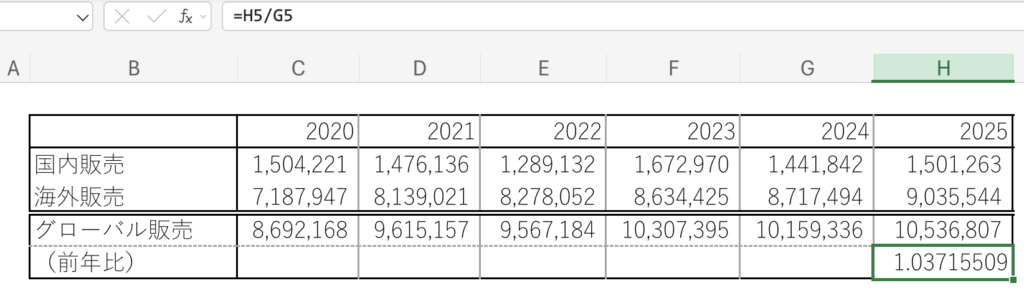 この表の例で、グローバル販売の前年比の数字を入れてみることにします。