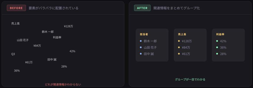 デザインで大事なことはいろいろありますが、次の4つを念頭に置いておくと資料を作成するときに何かと役に立ちます。