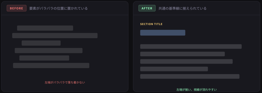 使うフォントは1種類なので、サイズや太さを変えないとメリハリがつかなくて、のっぺりした仕上がりになります。