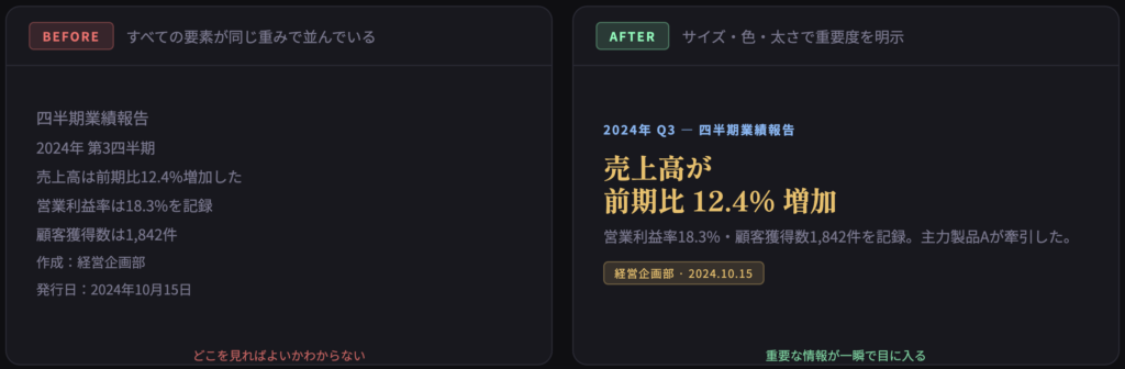 明確に差をつけて、強調したい箇所に視線を誘導する