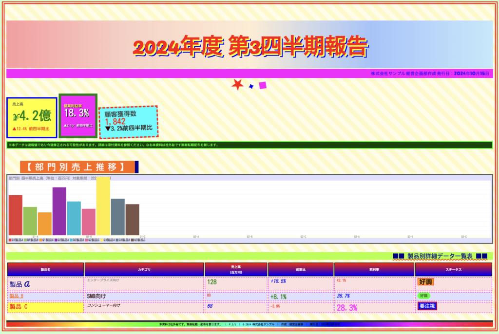 「見やすい・見映えがいい」というのは作成者のセンスの問題もありますが、知識でなんとかなる場合も多いです。