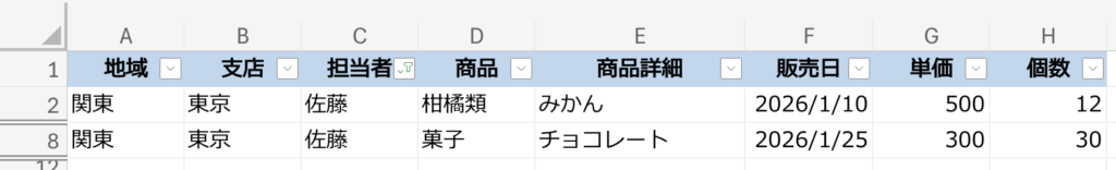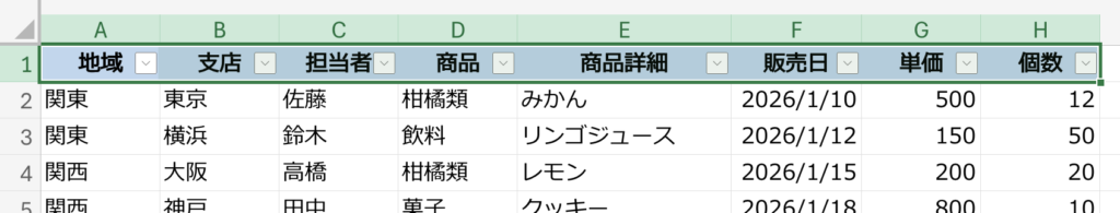 すると、こんなカンジに見出しのセルに▼がつきます。