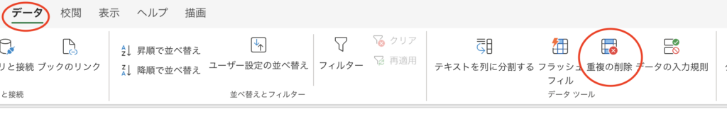 データの重複の削除