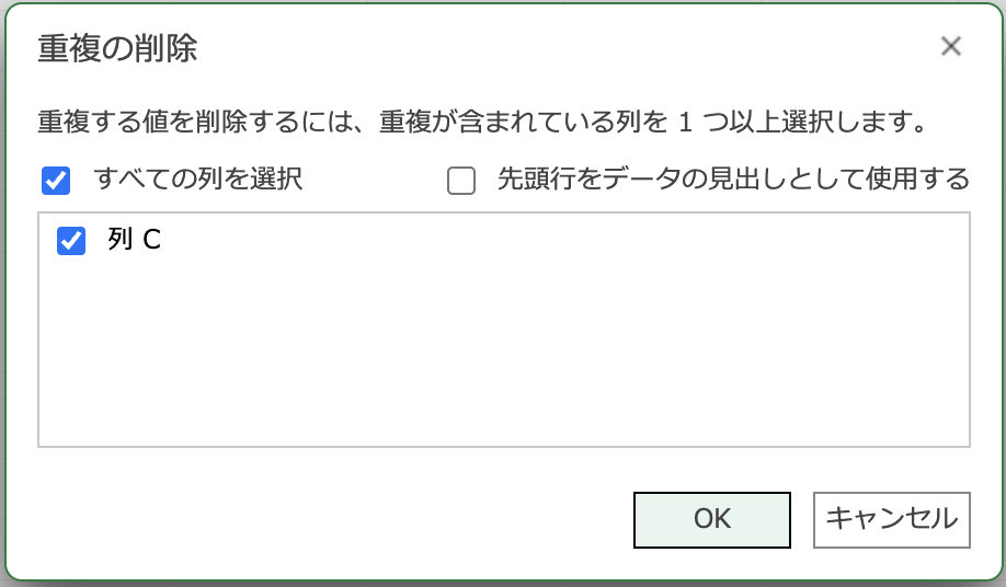 - 余分なものを消したければ重複の削除