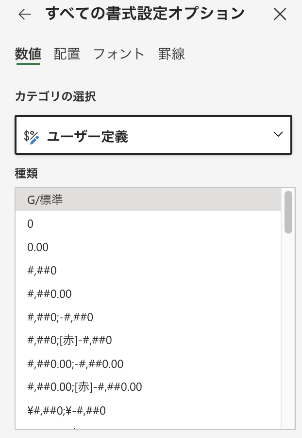 セルの書式設定からユーザー設定を覗いてみると、デフォルトでいろいろ入っているので、触ってみて「あ、これこれ」と思い出すことができます。