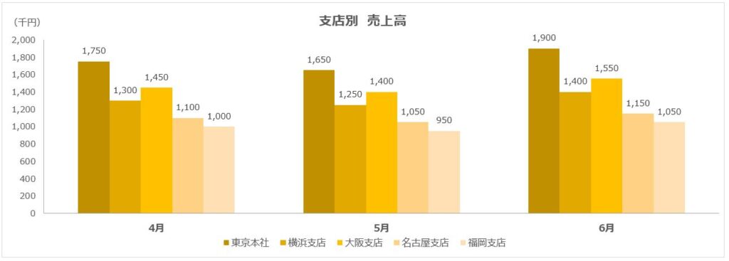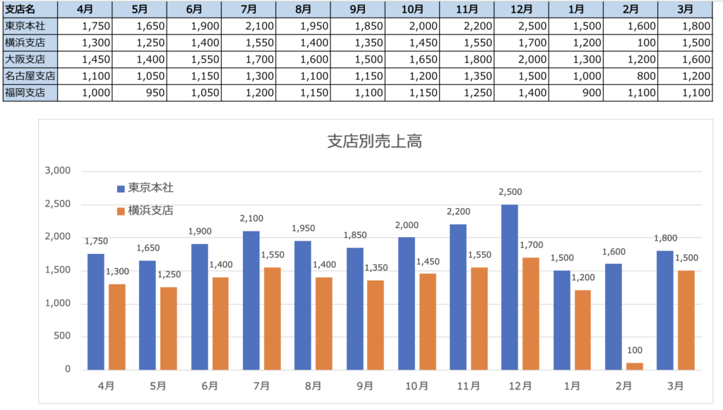 グラフの要素をいろいろ確認したときに、売上高の棒グラフを作成しました。