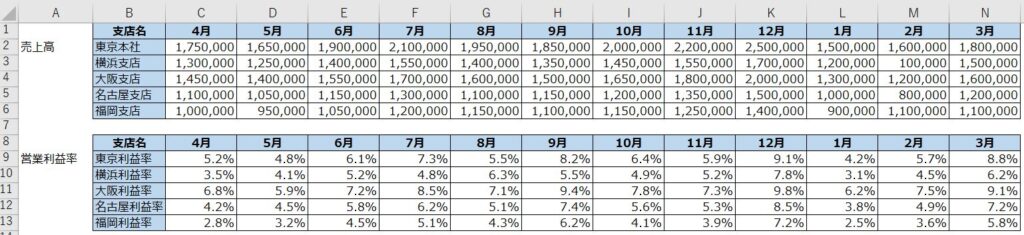 売上高と同じように月別の利益率データも用意します。