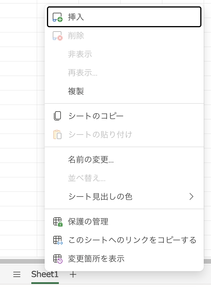 シート名を右クリックしてみると。