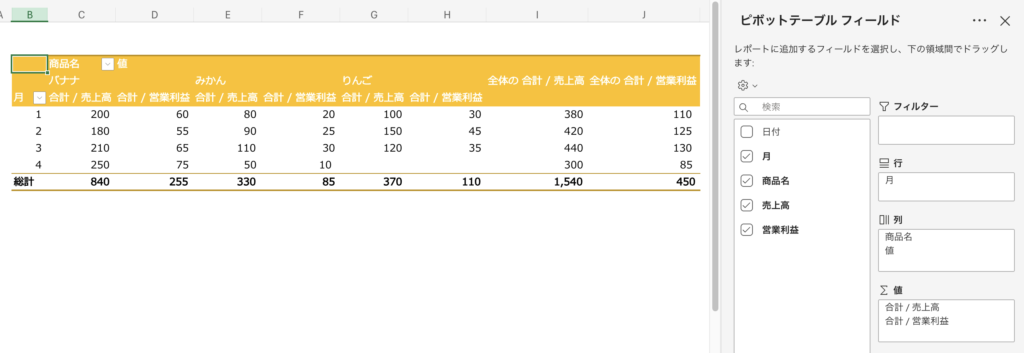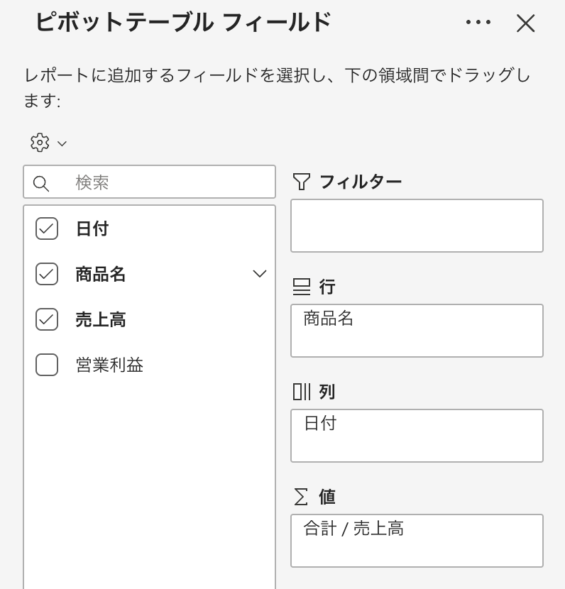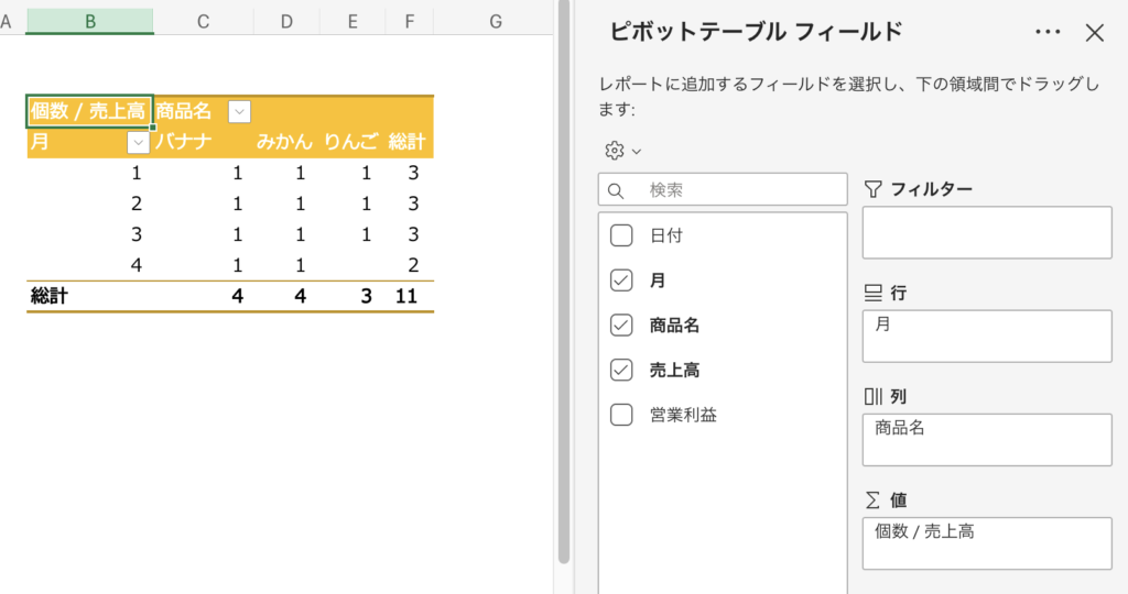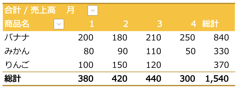 「これはどうかな」「アレとソレを比較したらどうかな」とフィールドを変えたりフィルターをかけたり並べ替えたりするのが前提の、流動的に使えるのが魅力の機能です。