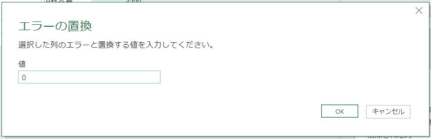 エラーをゼロにするには、「変換」タブの「任意の列」の「値の置換」の▼をぽちっとします。