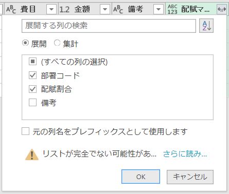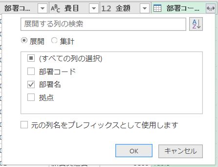 なお、「元の列名をプレフィックスとして使用します」は、わかりやすいかもしれないけどえっらい長い列名になっちゃうので、ワタシはチェックを外すことが多いです。