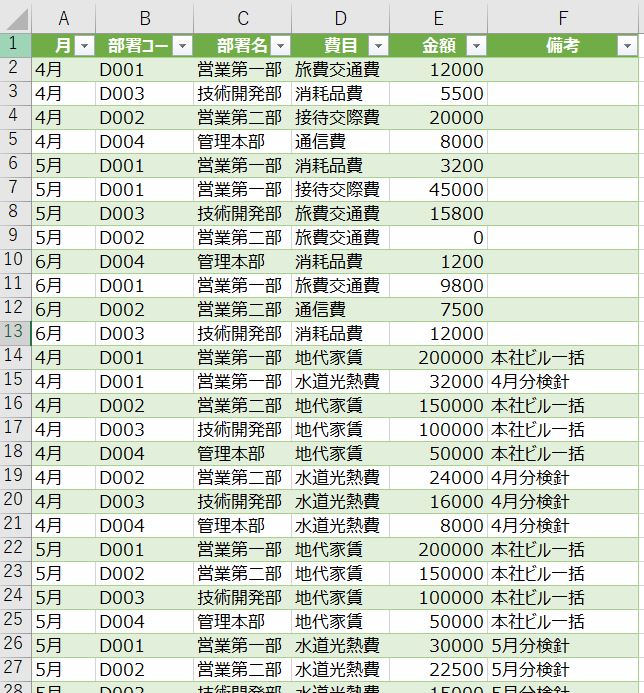 めでたく月別・費目別・部署コード別の配賦金額を算出できました。
