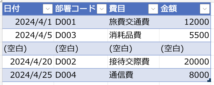 まず「空白」のレコードがあるのが気になります。元のデータに何か欠損があったのでしょう。