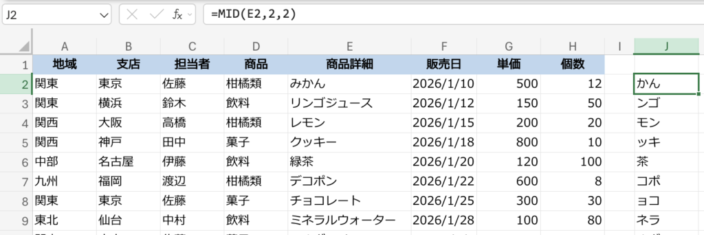MID関数|取り出す文字列の開始位置と文字数を指定