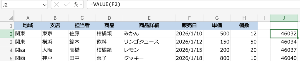 ってカンジですが、例えば日付の「2026/1/10」。これは一見文字列に見えますが、正体は数値です。