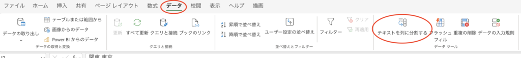 なんかずらずらと文字列が並んでいるけれど、これを区切って列を分けたい。