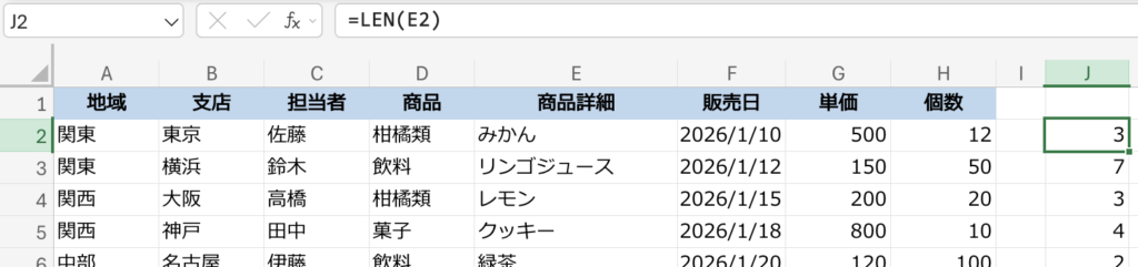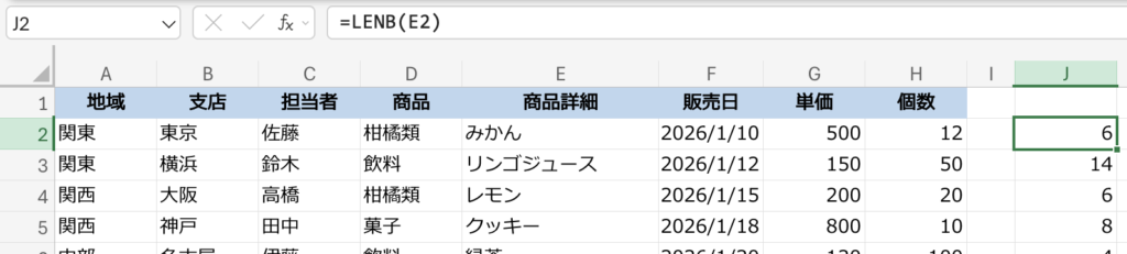 LENB関数も、LEN関数と同じような感覚で使えます。